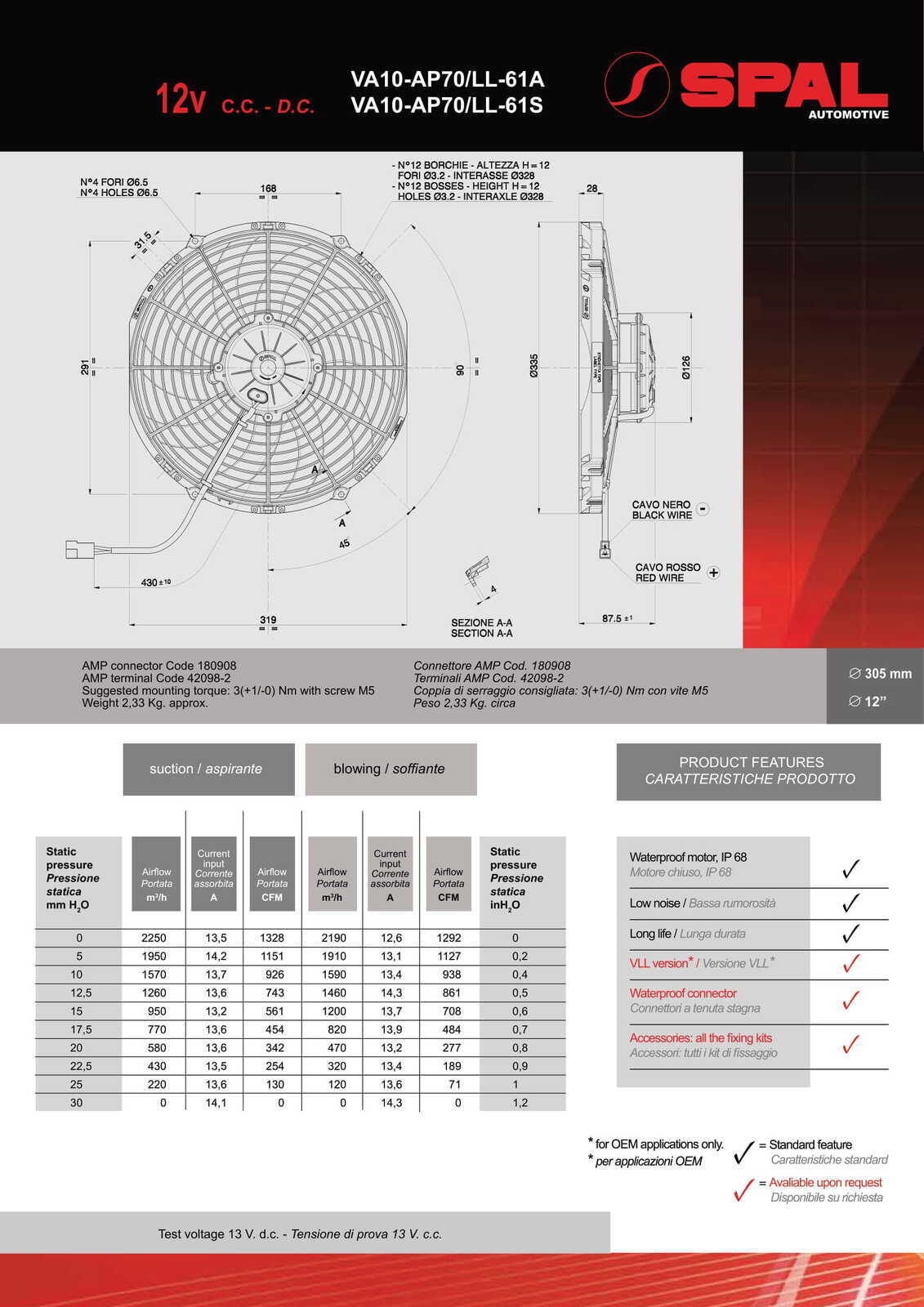 All SPAL Fans Are Individually balanced for long life, the 12" Puller Fan features a fully sealed water & dust-proof motor of superior quality and backed with a 3-year manufacturer’s warranty.